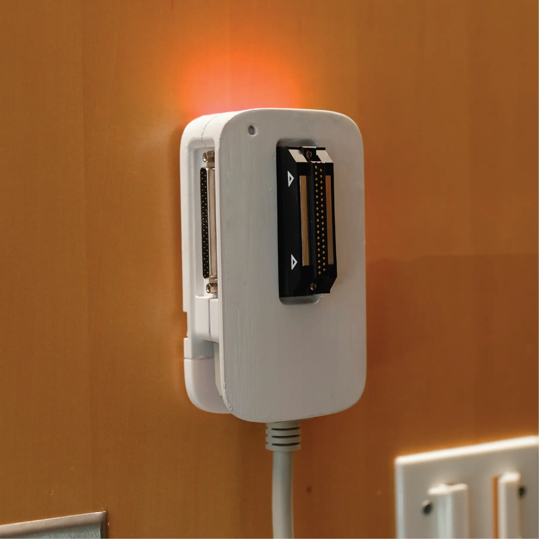 Mount HighLight to a single gang wall opening or flat headwall surface using the included bracket and hardware. Position it for clear visibility by the care team and away from potential bed impact zones. Snap the device into place once the bracket is secured.