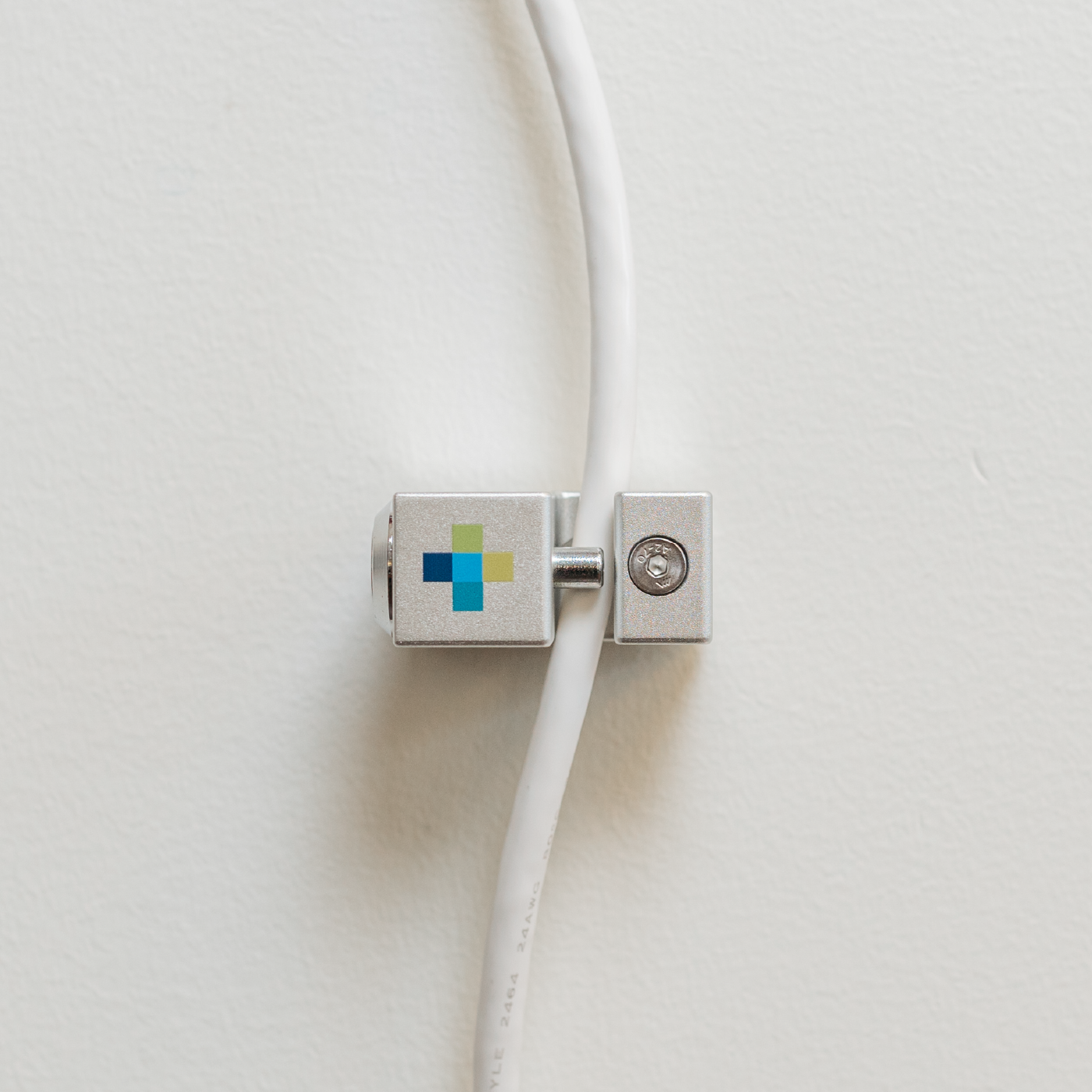 Wall-mounted lock secures magnetic cable